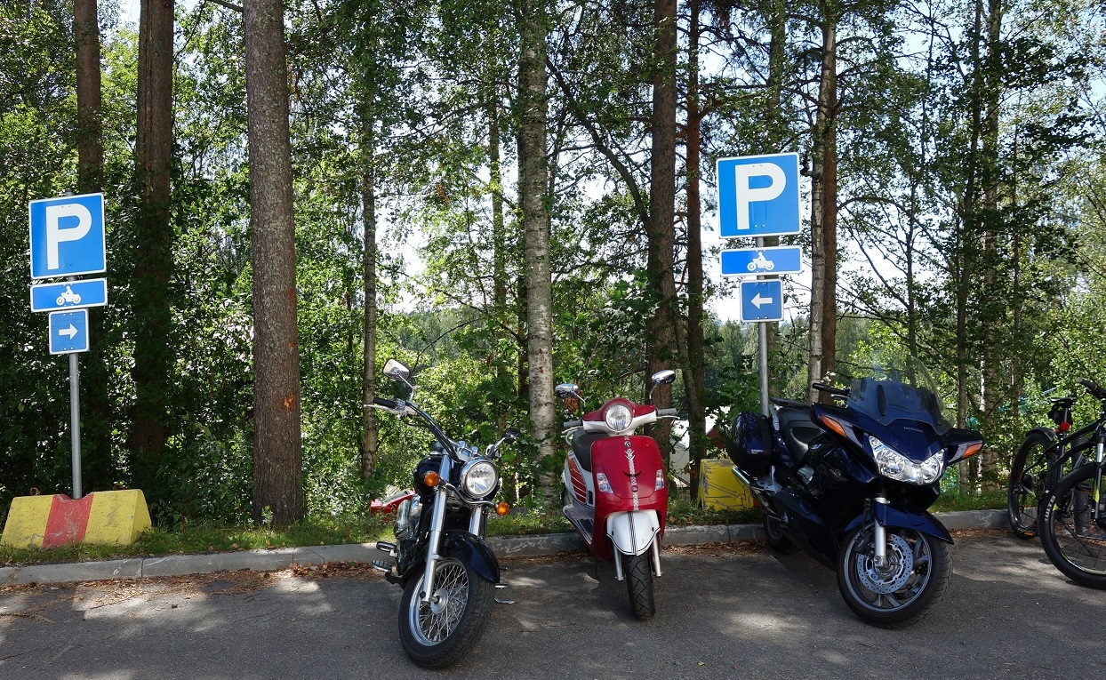 Moottoripyörät, mopot sekä skootterit tulee pysäköidä niille varatuille paikoille F-talon eteen, L2-talon tai M-talon taakse/ P2-hallin seinustalle. Mopoautot on vietävä pysäköintitaloon. Kts. Kartta ja kuvat