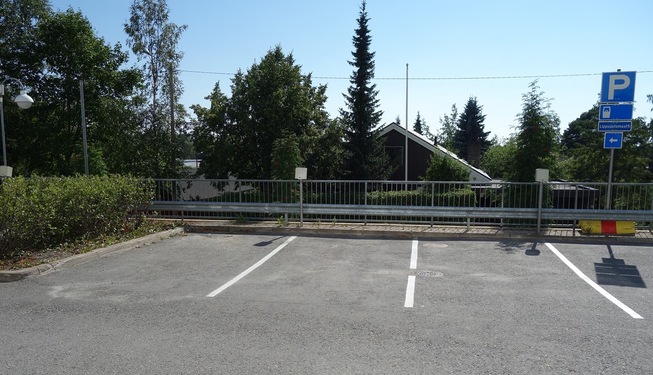 Pääsisäänkäynnin piha-alueella 30 min kiekkopaikkoja saattoliikennettä ja takseja varten. Pysäköi ainoastaan merkittyihin ruutuihin!